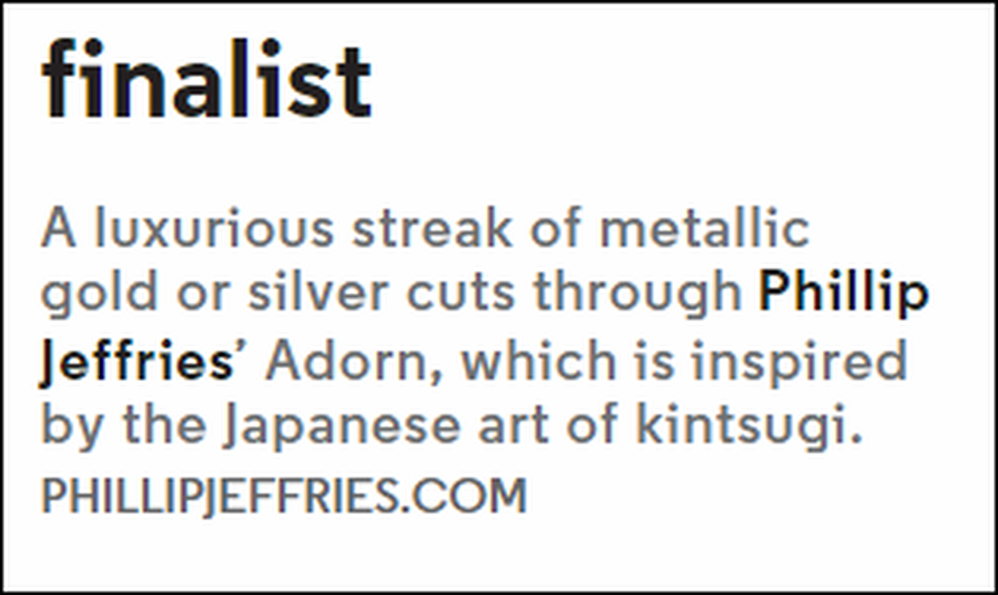 In the article "HD product Awards" featured Phillip Jeffries Adorn 9293 as a finalist.