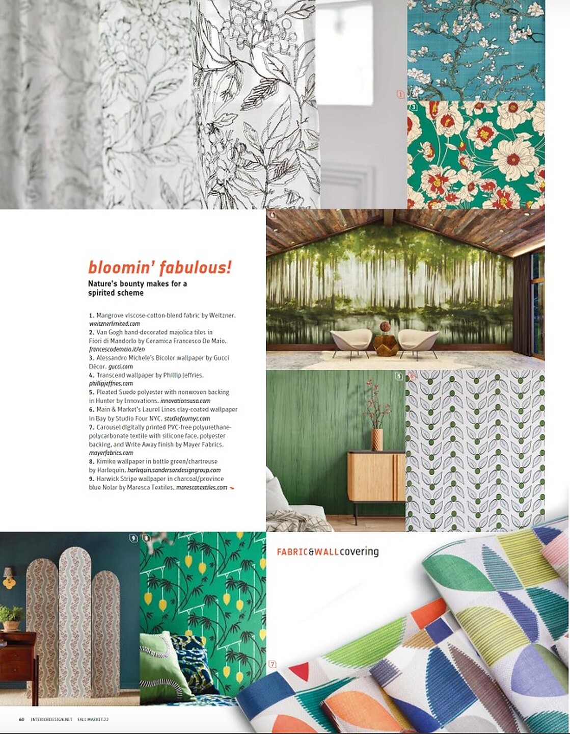 In the article "Bloomin' Fabulous" featured Transcend 9574amongst other nature schemed wallcovering.