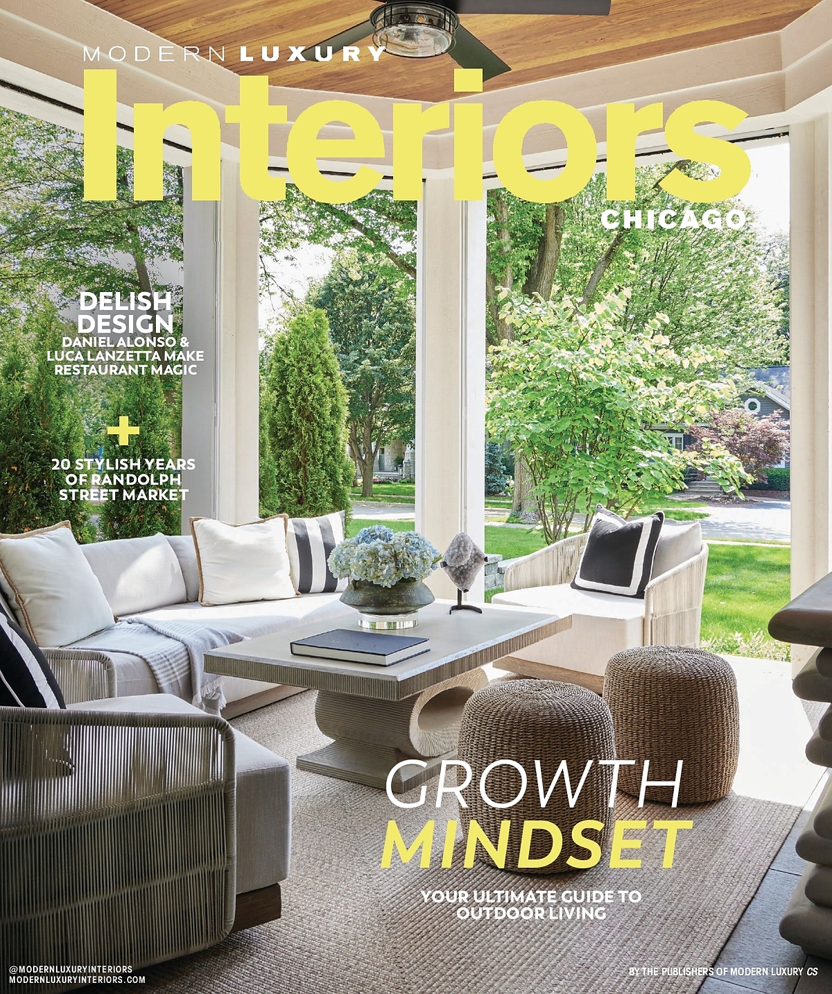 In article, "Together Again," interior design firm Kaufman Segal Design featured Vinyl Stingray 7929 Seven Seas in the dining room, Maldives Weaves 3885 Fauna on the bedroom of a ceiling, of a client's home. In article, "Lavish in Lakeview," interior designer Donna Mondi featured Deco Hemp 5022 in the bedroom of a client's home.