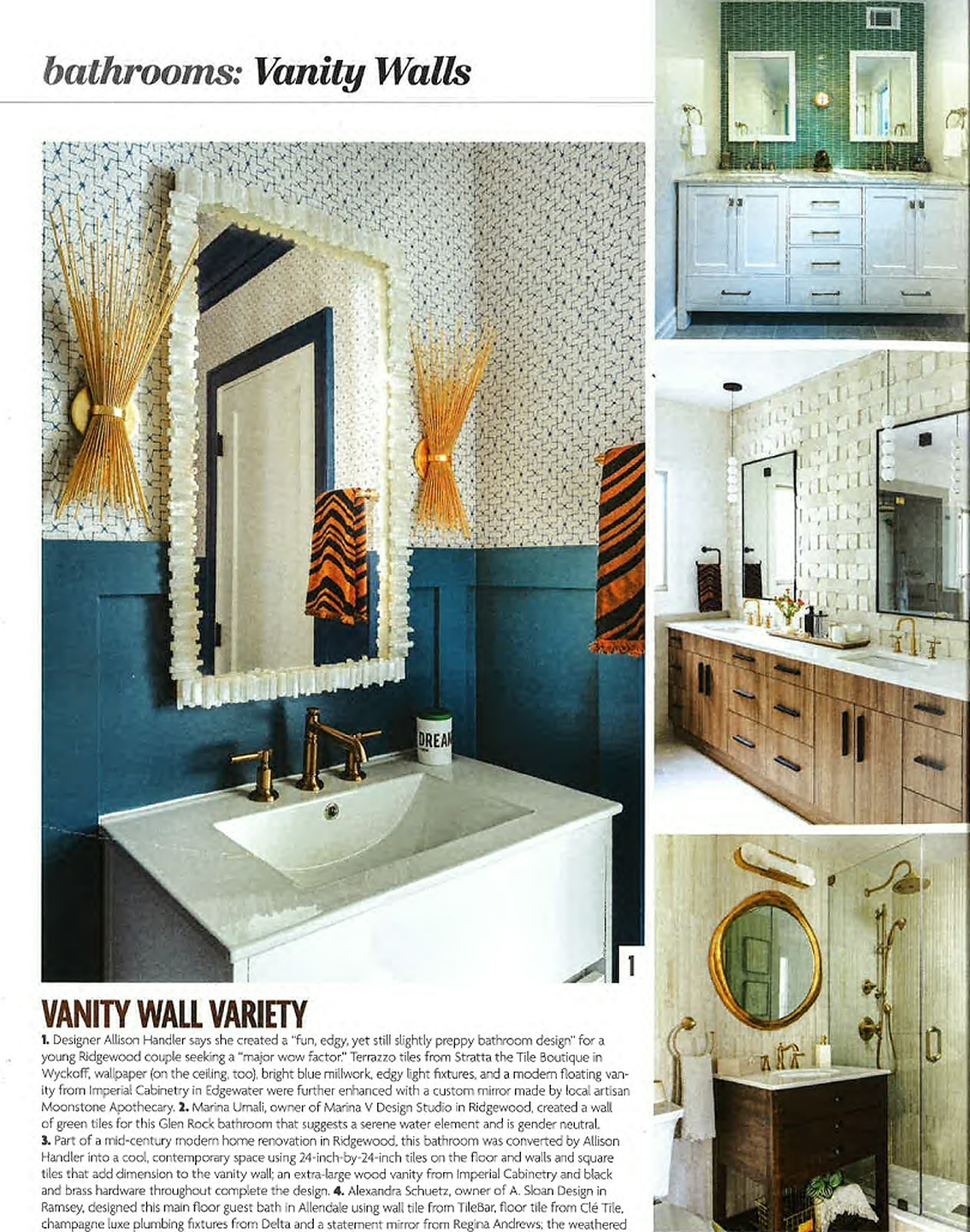 In article, "Bathrooms: Vanity Walls," interior designer Allison Handler featured Vinyl Gateway 7988 Delft Blue in the powder room of a client's home.