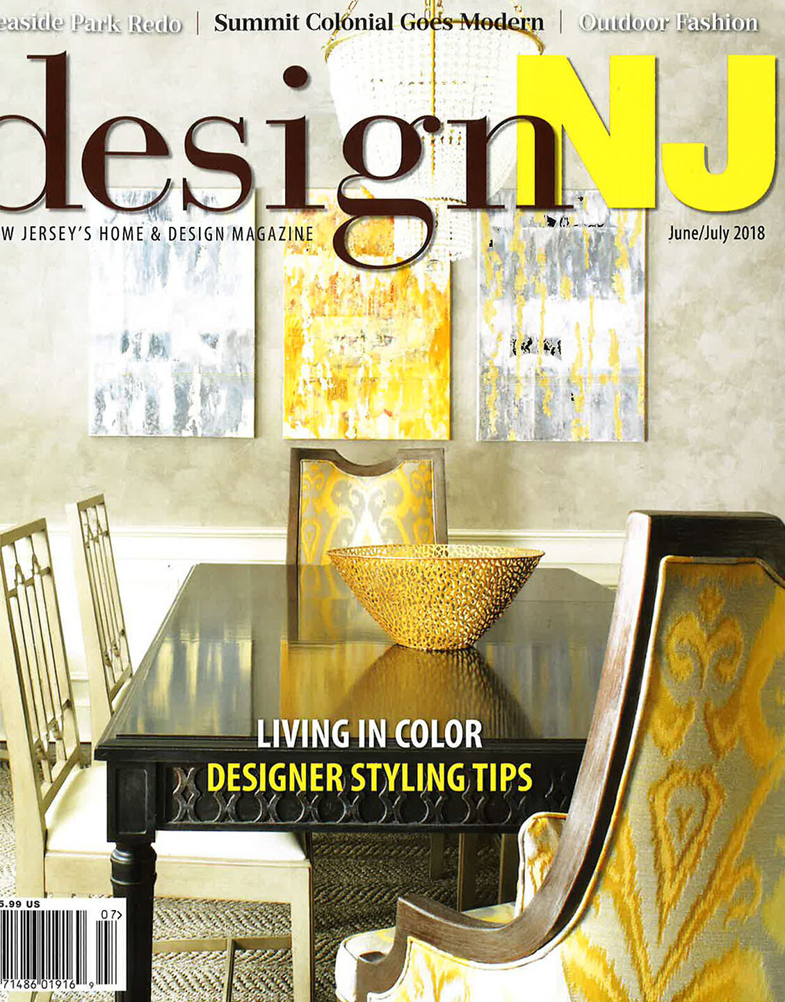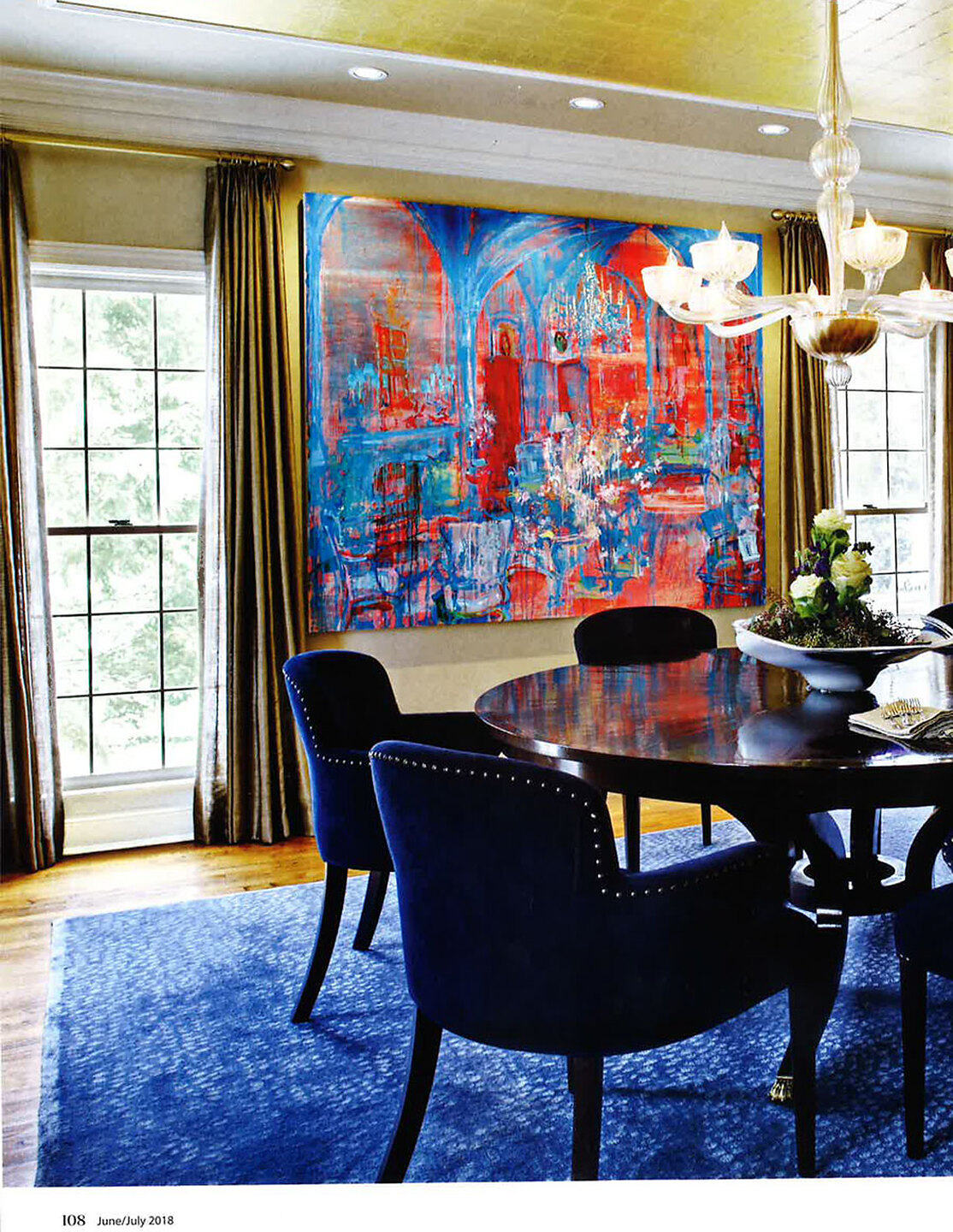 In article, "State of the Art," Interior designer Kingsley Belcher Knauss featured Gold Leaf GV124 Tokyo Grid on the ceiling in the dining room of a client's home.