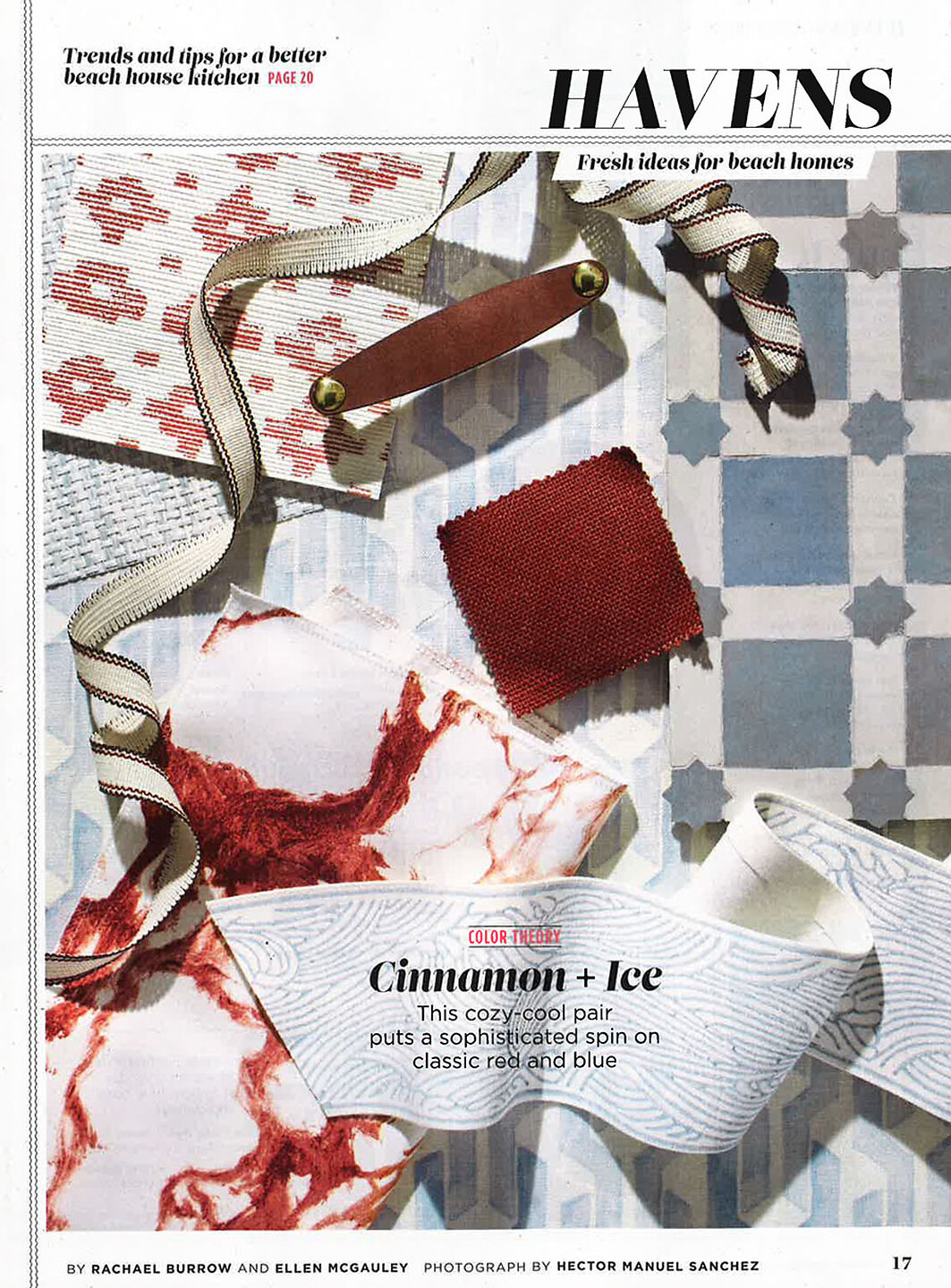 In article, " Cinnamon and Ice," Tulu Cloth 8434 Red Panda on White Manila Hemp is featured as a sophisticated spin on classic red and blue.